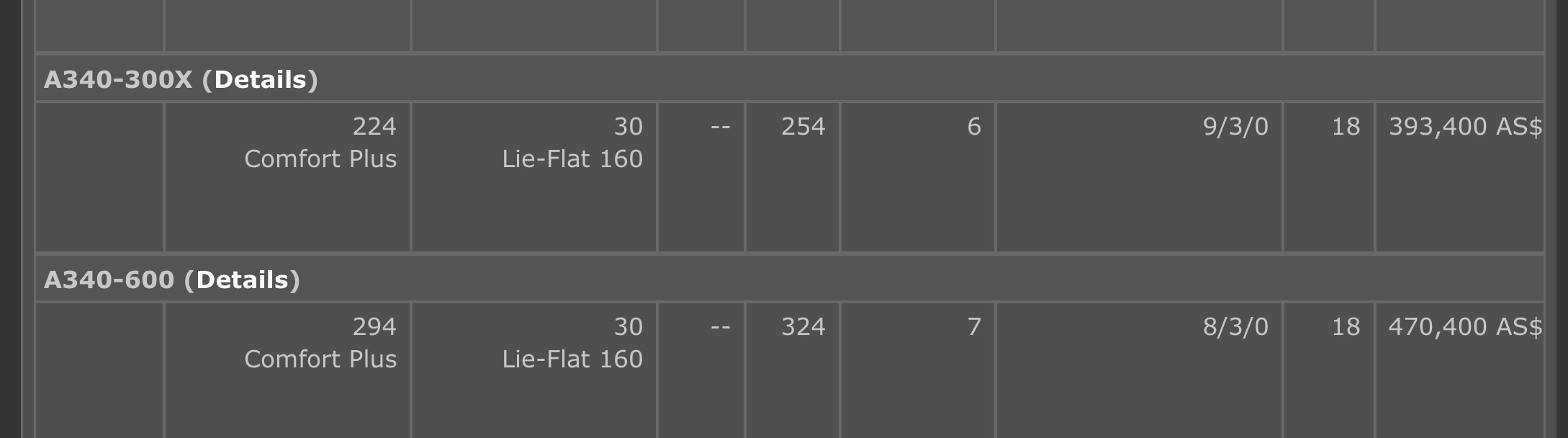 I have cabin configurations for both of these. Both state they do 440 seats but with the same seating the a340-600 seats more. Why?