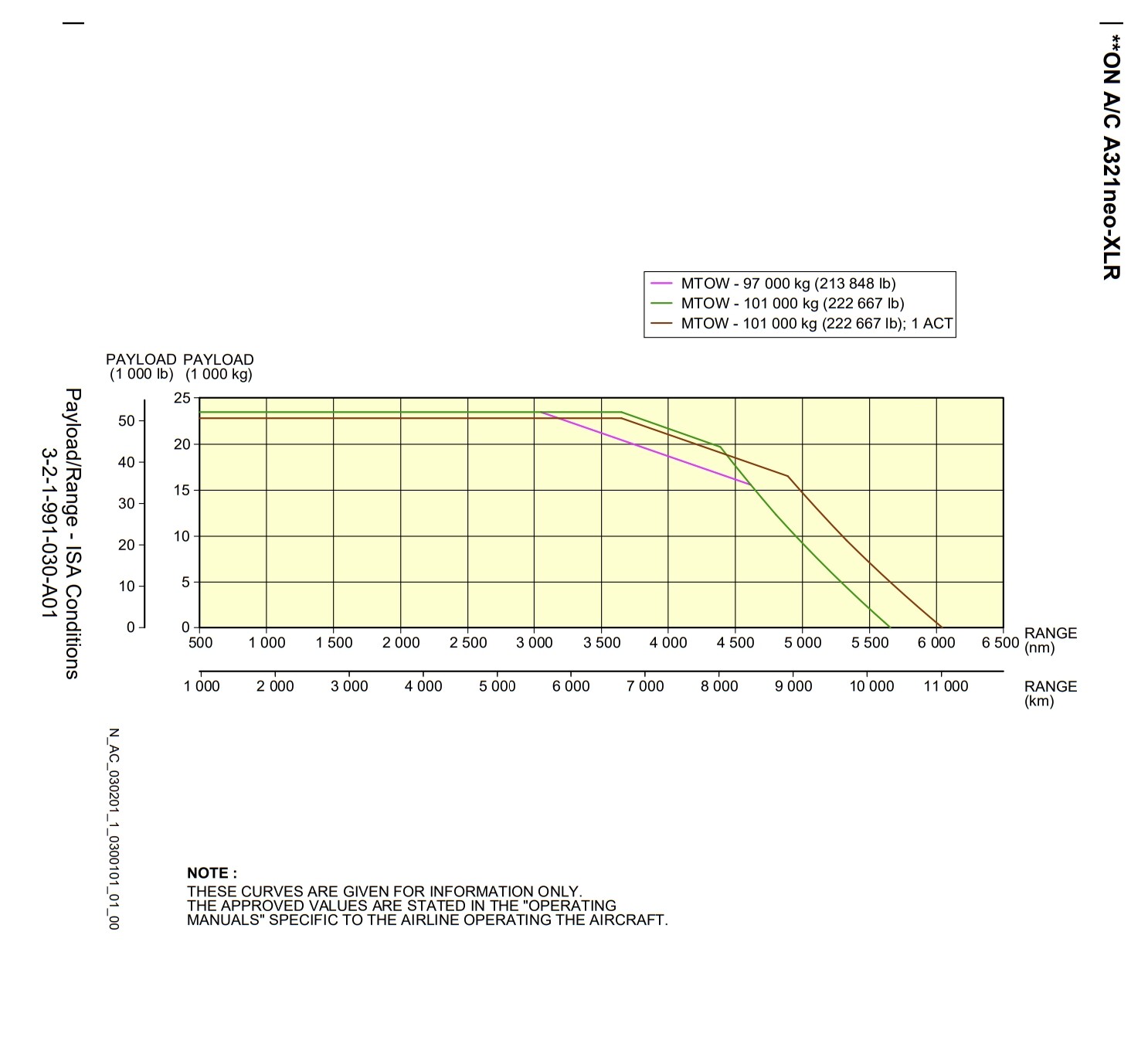 I see that the fuel load is designated for the RCT+ACT version, making the range to payload calculation quite easy. If I remember correctly, for every additional ton in gross weight over a baseline, it should be 30-40kg/hour additional fuel flow for the A321.