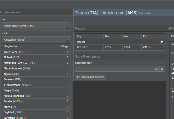 Ich fahre schon eine Linie mit einer CR7 Tirana nach Barcelona. Ich will jetzt jedoch einen weitere Linie mit CR7 Tirana nach Barcelona in Verkehr setzen, da lässt er mich mit einer CR7 nicht mehr zu.