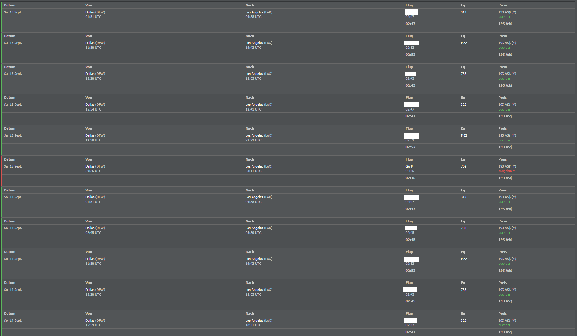 As you can see quite a bit of competition going on from DFW to LAX everyone is pricing the flight at 193. In addition nearly everyone is offering the exact same seats but somehow I am able to fill my flight and that even on the biggest plane of all flights offered?
