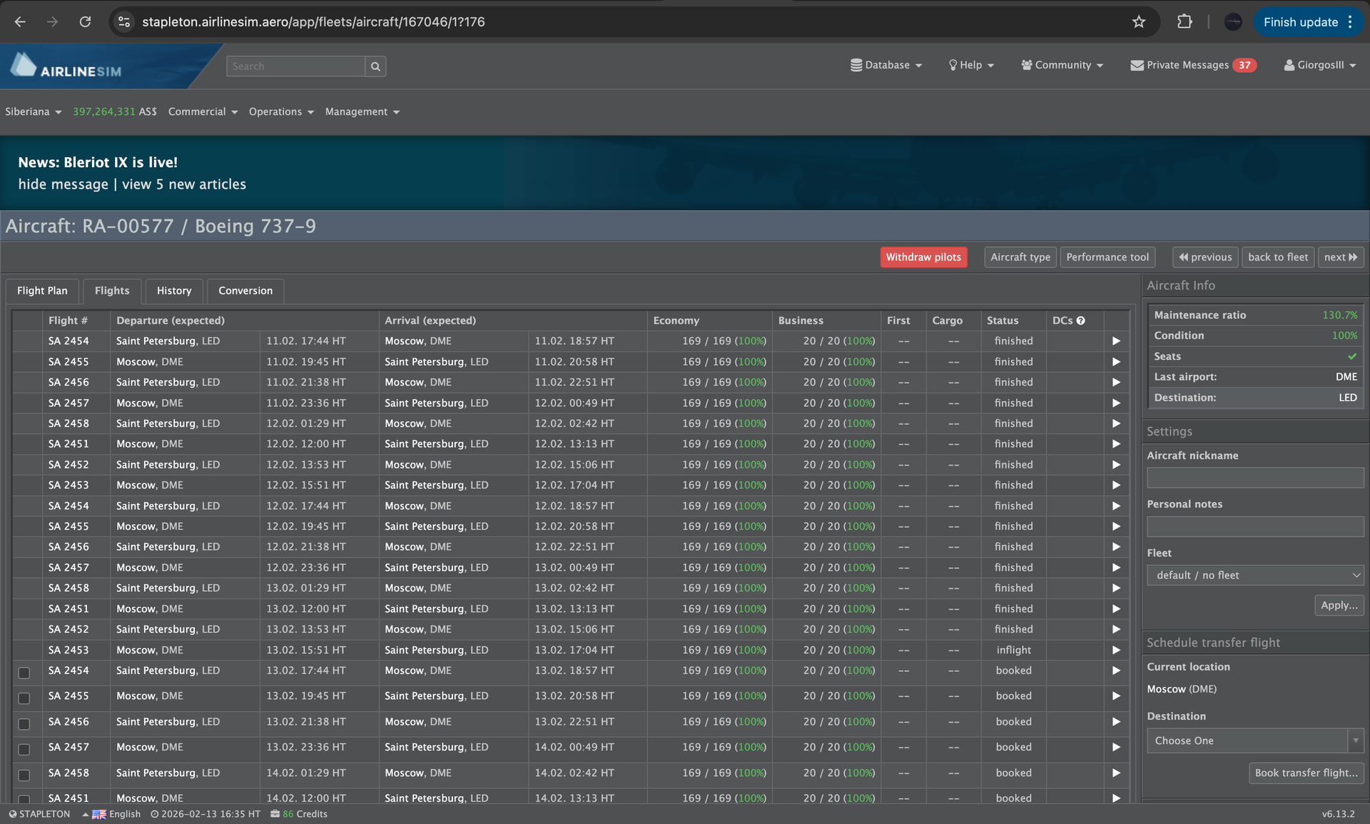 also a note: i am not using a full passenger capacity cabin layout for this specific aircraft. and even on routes with very little loads there is still no cargo.